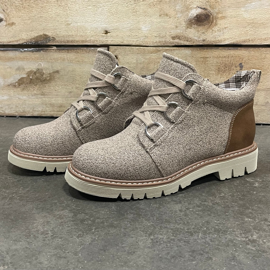 Step into cozy autumn vibes with the Corkys Campfire Lace-Up Boots! These boots mix style and function perfectly, featuring a classic lace-up look with sturdy metal eyelets for the ideal fit. Their chunky lug sole keeps you steady on muddy trails or crunchy leaves, while the cushioned insole makes each step feel like a dream. Plus, the handy pull-on loop means you’re ready to roam in no time. Adventure calls—answer it in style and comfort!
