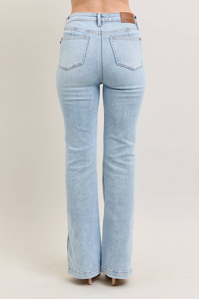 Get ready to slay all day in these Judy Blue Tummy Control Slim Boot Jeans! These jeans not only give you a flattering bootcut shape, but also provide tummy control for a confident and comfortable fit. Say goodbye to muffin tops and hello to a sleek silhouette. #goals